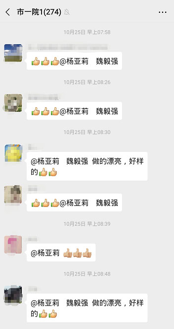 10月23日晚上十点,翻开市一院的职工微信群,一排排点赞大拇指滚动着刷屏,这是在为谁点赞呢?