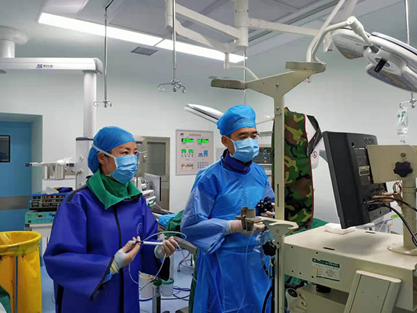 该患者自左右肝内胆管汇合处开始多发胆中管结石,手术临床操作不仅难度大,还存在着较大风险。因此,杨主任和魏大夫在术前周密讨论,制定严谨的治疗方案,并做了大量的术前准备,在手术室麻醉科以及内镜室各位同仁的大力配合下,在许明策主任亲自坐镇下,魏大夫一丝不苟,一边盯着前面的显示屏仔细观察,一边手持着器械调整角度、力度进行操作,整个过程顺利,手术圆满成功,病人的所有结石被取出,并安全送返病房。
