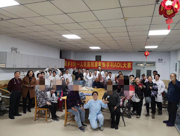 主管医师韩韦姣尽心尽力,每天评估患者的治疗效果,及时调整治疗方案;薛英杰、张英敏、牛雪飞、张伟等治疗师认真负责,每天都极其耐心地为患者做康复训练,为了避免长时间的康复训练可能给患者带来的疲倦、烦躁情绪,提高康复效果,他们总是在心理上耐心地开导患者、鼓励患者。同时,康复医学科定期组织各项活动,患者及医护共同参与,避免康复的枯燥、单调,拉近患者与医护的距离。
