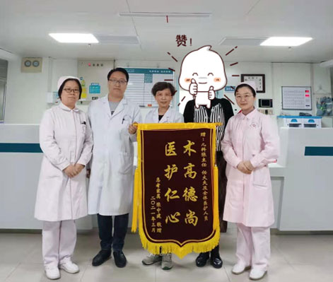 近日,我科收治了一名1岁3个月呕吐腹泻伴发热的患儿,在来院之前曾辗转过多个地方就诊,还做过针灸,贴膏药等治疗,均未见好转,经验丰富的任大夫在患儿入院后很快完善了查体、辅助检查等项目,确定了诊断,及时给予对证治疗,避免了并发症的发生。由于体内水分丢失,血管弹性差,不充盈,孟祥云护士长安排了有经验的娄金彦护士给患儿穿刺,一针见血,很快给患者输上液体,缓解了家属的焦虑。张主任平时对这种有院外就诊史,病情迁延反复的患儿非常重视,带领科里大夫查房,给患儿查体,每天都会了解患儿病情的进展,家属对医护协同工作表示非常满意,经过几天的治疗,患者恢复健康出院,家人送来了锦旗感谢张主任,任大夫及儿科全体医护人员。