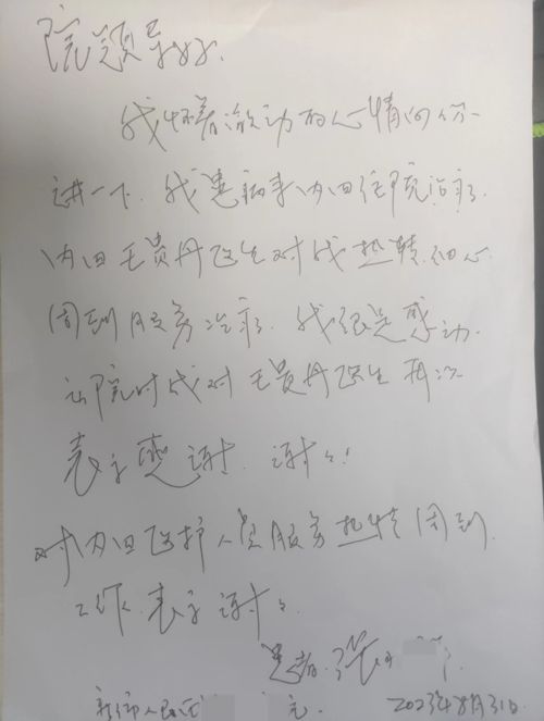 近日心血管内科四病区收到了一封感谢信,虽然廖廖数语,却是患者亲自书写的,饱含患者对心血管内科四病区全体医护的满意与肯定。